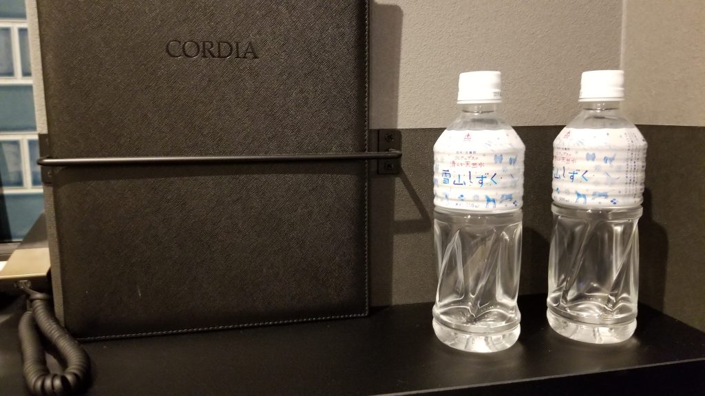 ホテルコルディア大阪(Hotelcordia-Osaka)は、全室ミネラルウォーターがサービスでもらうことができ、連泊の際も、ちゃんと補充してくれます。
