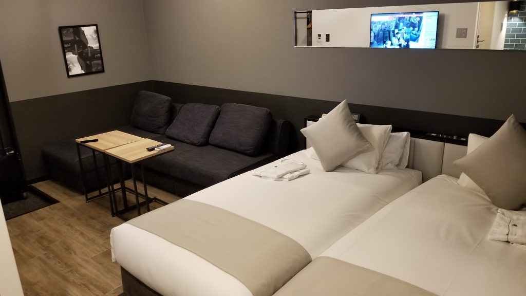 ツインのお部屋は、脚が伸ばせるソファーがあり、滞在中はほとんどこのソファーの上にいました。