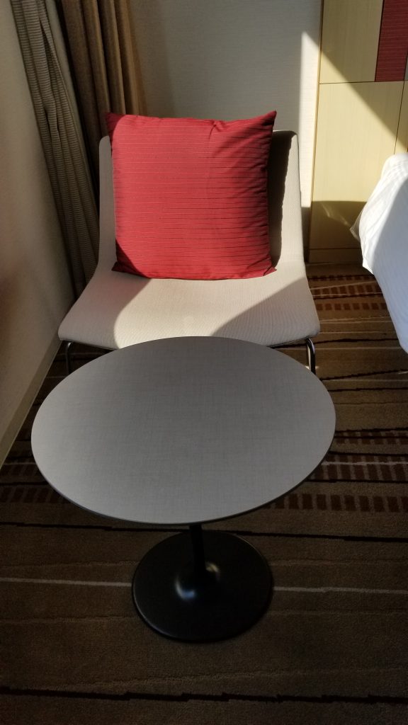 窓とベットの間いにある椅子もお部屋のトーンに合わせて落ち着いた色合いです。